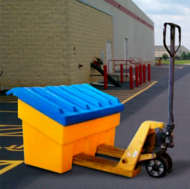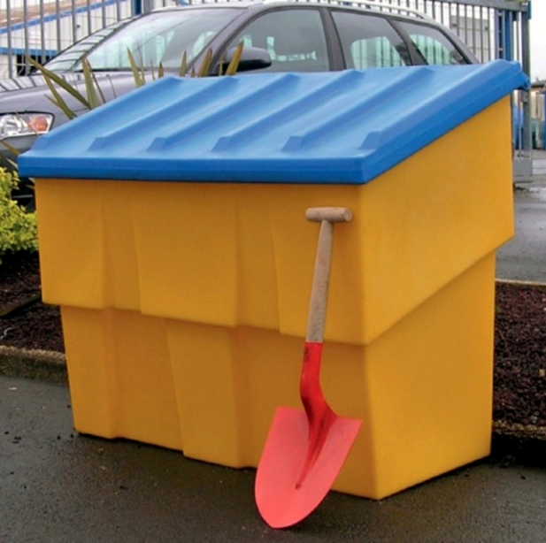 Пластиковый ящик (контейнер) широкого спектра применения для песка и песчано-солевой смеси, сорбента, хранения запаса кормов, зерна и прочих сыпучих веществ, требующих удобного хранения и использования веществ, а также укрытия их от осадков и влаги. Может применяться для содержания запасов воды, других жидкостей, компостирования и т.д.